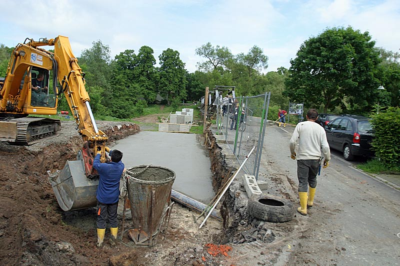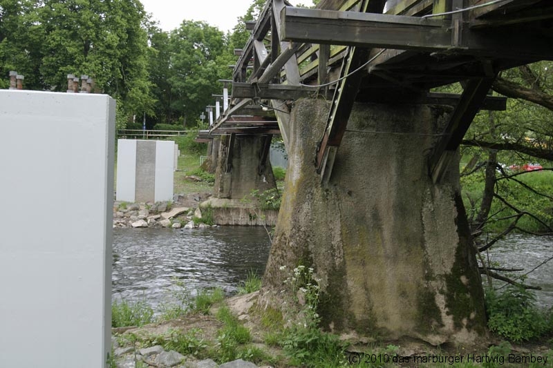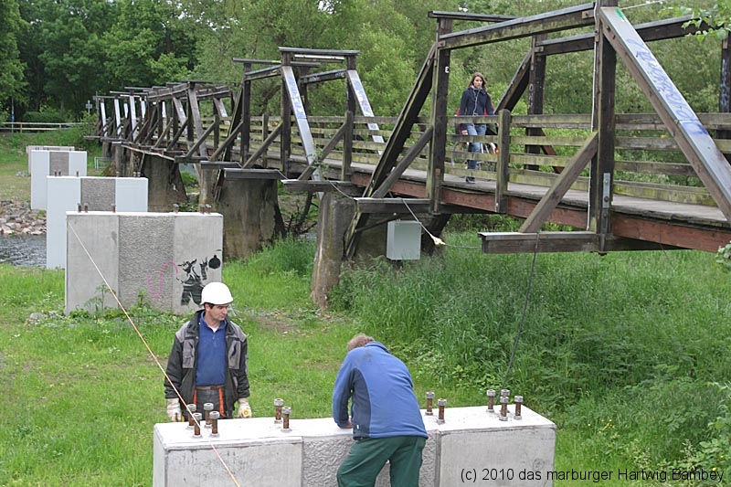 Er rechne etwa mit 8 bis 10 Wochen Bauzeit sagte Polier Podewski von der Firma Ludwig Schneider (L S Bau), die im vergangenen Jahr die Stegpfeiler geschalt und betoniert hat.