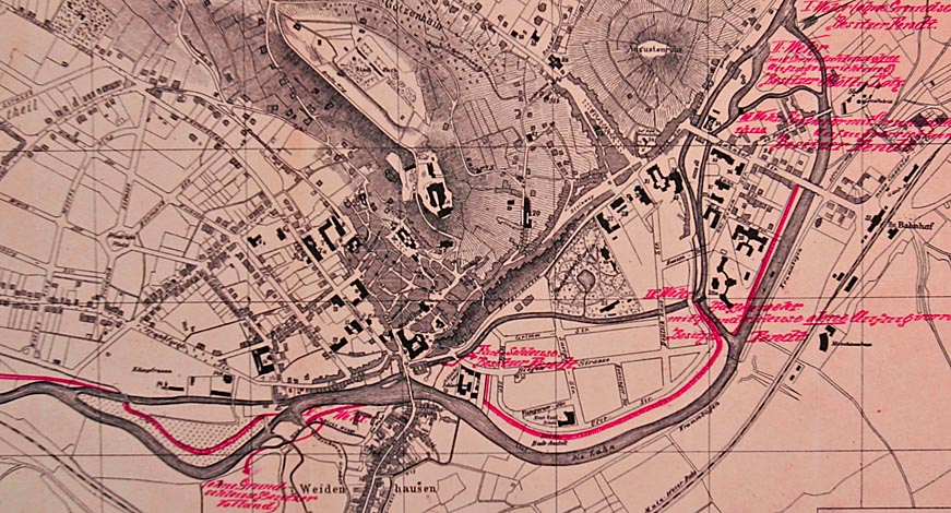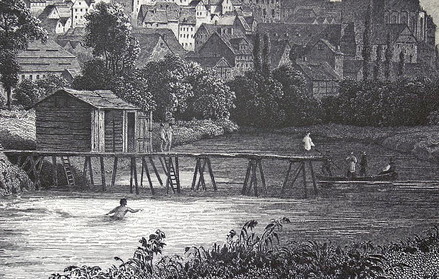 So lohnt der Gang an den Friedrichsplatz in das Staatsarchiv zum Schauen, Suchen und Überlegen. Der mit der Ausstellung angelegte Rückblick und Überblick zum Marburg vor allem der letzten gut 200 Jahre verdeutlicht ein wechselvolles Verhältnis von Stadt und Fluß. Wollen manche Ansichten idyllisch oder nostalgisch wirken, so zeigen zugleich Bilder eines je alten Marburg ein anderes Verhältnis von Stadtraum und Fluß. Vieles wirkt geordnet, übersichtlich und wohlgefügt, zunächst, und ist zugleich immer nur Momentaufnahme.