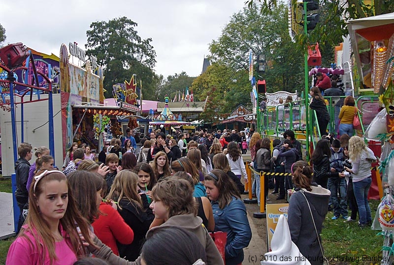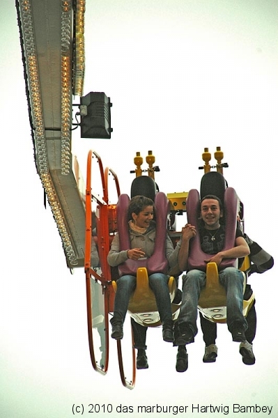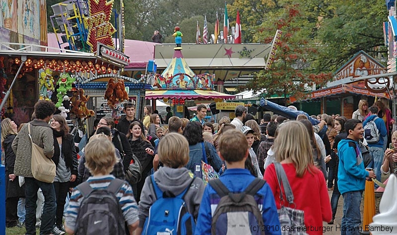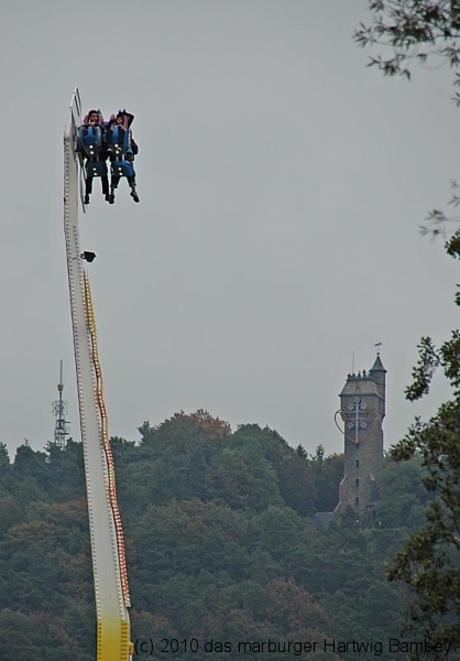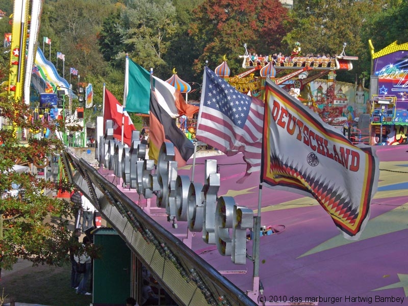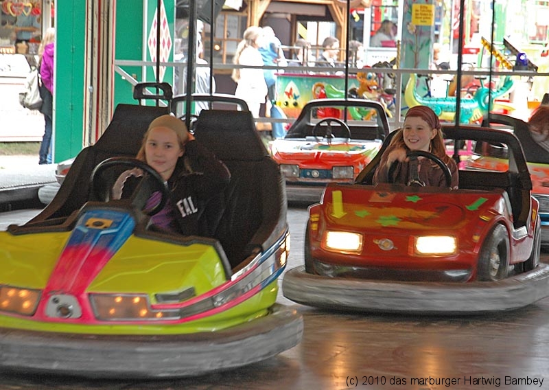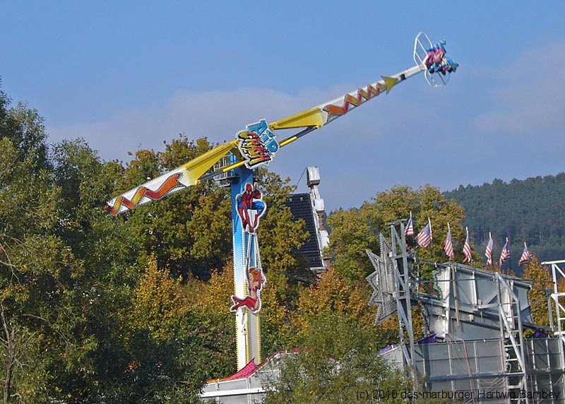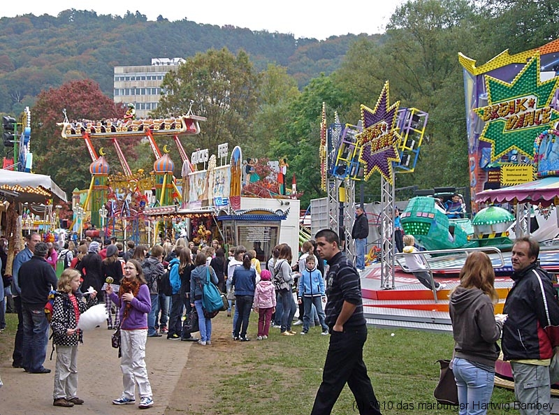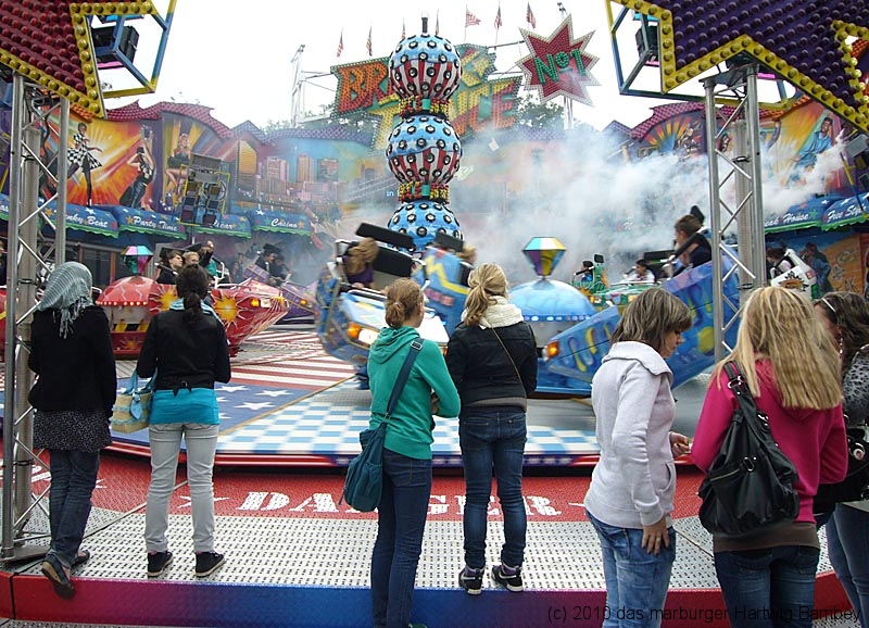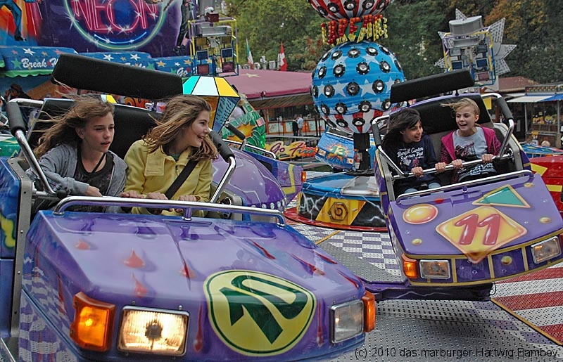 Marburg 8.10.2010 (red) Je länger der Tag, desto besser das Wetter und blauer der Himmel am ersten Tag der Innenstadtkirmes. Zur Freude der Kiddies, Teenies, Großjährigen und wer noch so alles bei allen möglichen Unternehmungen gesichtet und abgelichtet wurde. Die Kamera hat ein Objektiv und ist objektiv, die Fotografen sind es aber nicht (unbedingt). Na, man wird es sehen und kann es sehen, auf der Folgeseite. Einfach weiterschalten, dort wartet eine Foto-Galerie mit Bildern von Erich Schumacher und Hartwig Bambey vom Freitagnachmittag. Texte oder Bildunterschriften haben wir uns gespart.