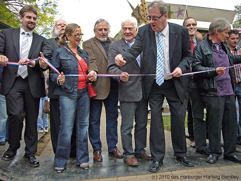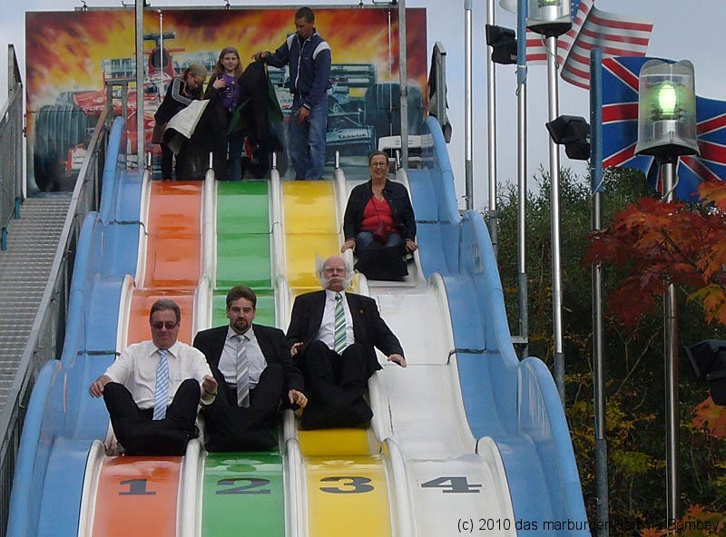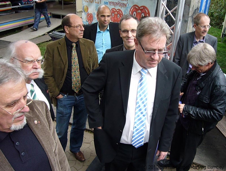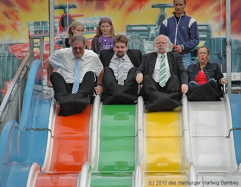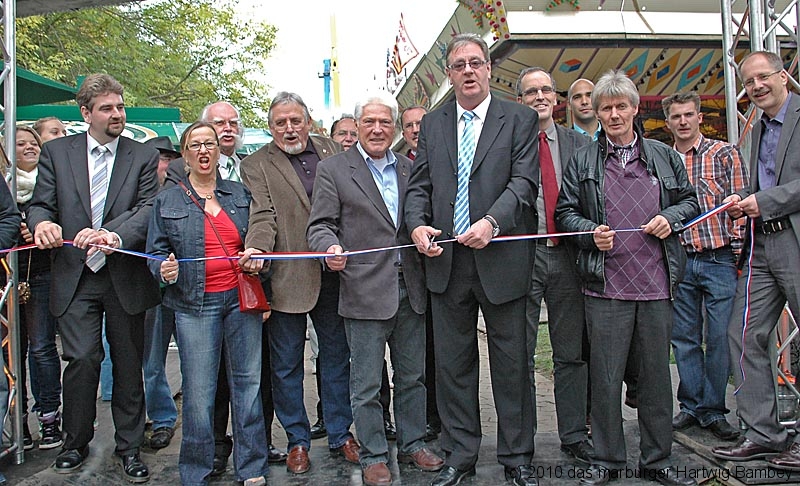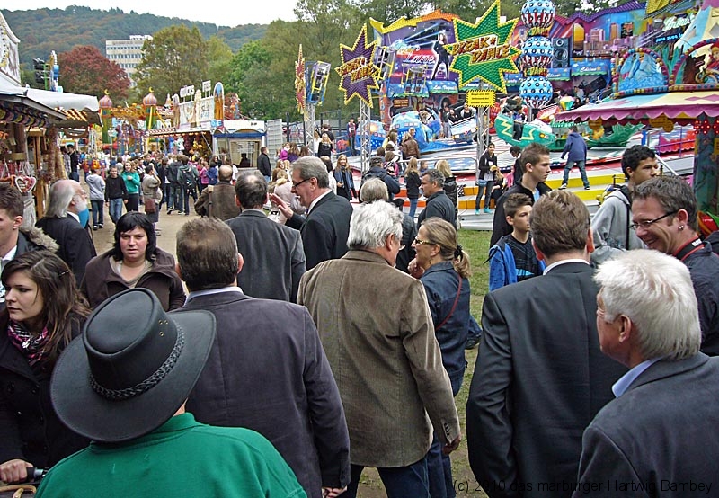 Wie gesagt, man kann und braucht es sich einfach nur anschauen. Jede Menge junges Volk, alte Kerle und zufriedene Schausteller, vorneweg Adi Ahlendorf, mit dem OB und anderen Marburger Leuten.