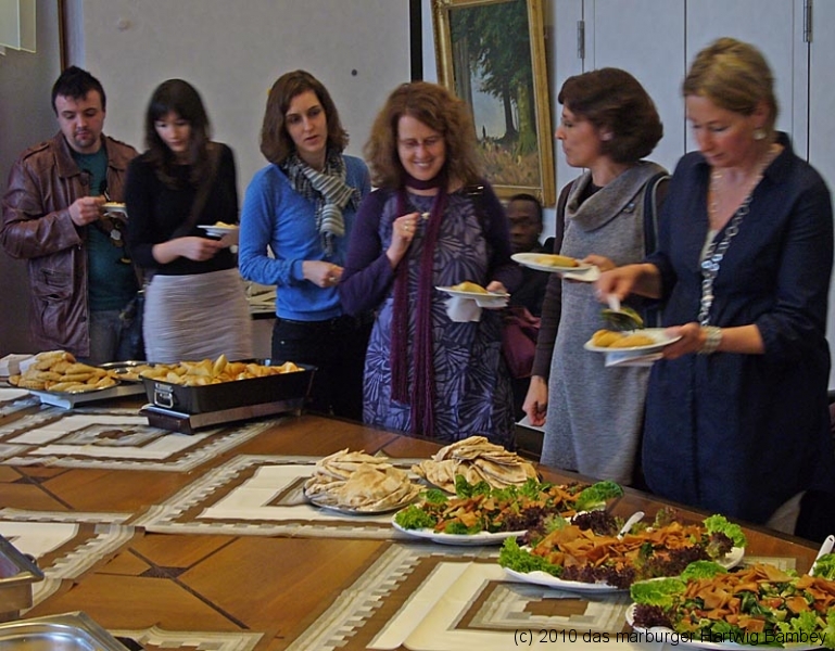 Auf alle Versammelten wartete schon ein köstliches syrisches Buffet. Ramzi Aljat mit seinem Restaurant Palmyra hatte eine gelungene Verköstigung bereitet.
