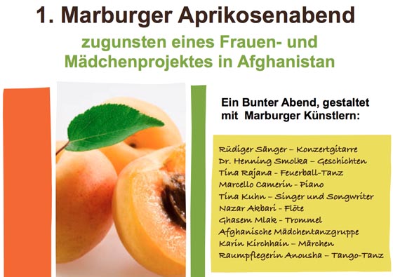 Wohltätigkeit für Frauen in Afghanistan als ‚1. Marburger Aprikosenabend‘