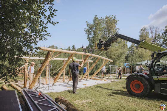 Der neue „Schwälmer Tanz“ an einer Fachwerkscheune in Willingshausen