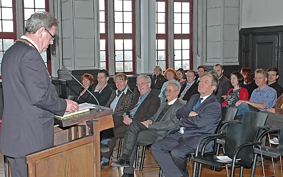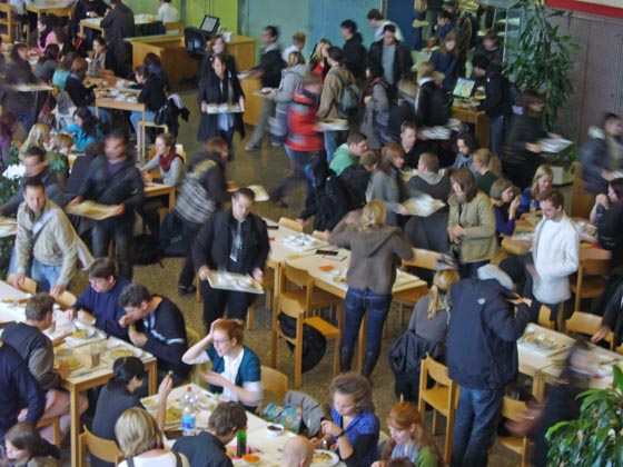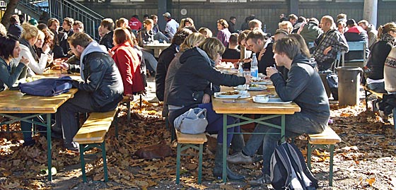 Marburg 28.10.2010 (yb) Die gut 500 Plätze im großen Speisesaal der Mensa waren besetzt mit bestens gelaunten ErstsemsterInnen. Inmitten saßen Uni-Vizepräsident Prof. Schachtner, Studentenwerk-Geschäftsführer Uwe Grebe, Marburgs OB Egon Vaupel …