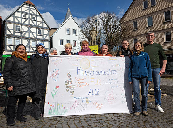 22.03.2024 (pm/red) Zum internationalen Tag gegen Rassismus präsentierten Kursteilnehmerinnen mit Sozialpädagoginnen von Arbeit und Bildung e.V. auf dem Marktplatz in Treysa die Pop-up-Ausstellung >Parcours der Menschenrechte<. „In der Schwalm soll …
