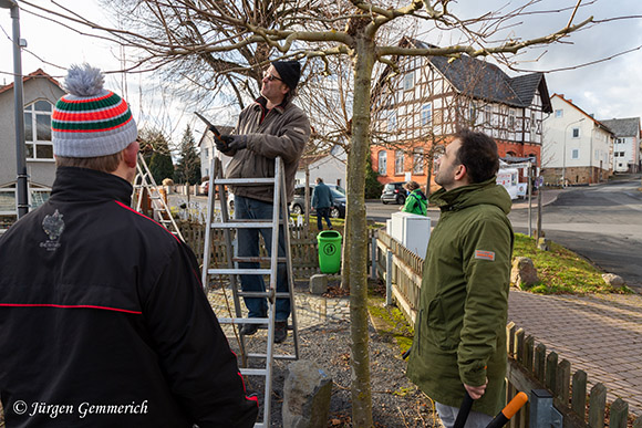 Kultur-Initiative Willingshausen besorgt gemeinschaftlichen Baumschnitt auf dem Dorfplatz
