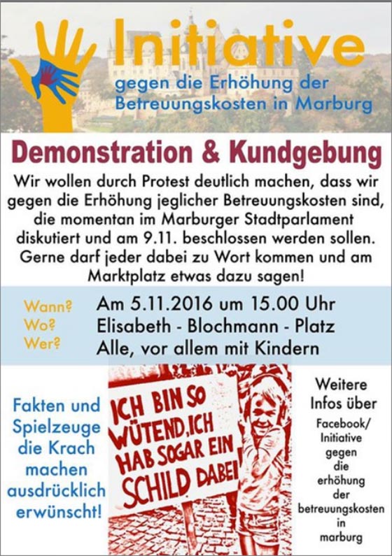 Demonstration gegen Erhöhung der Betreuungskosten in Marburg am 5. November Weiterlesen