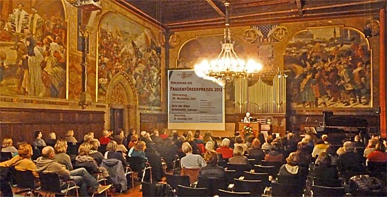 Marburg 18.12.2012 (yb) Die Verleihung des diesjährigen Frauenförderpreises an zwei Preisträgerinnen wurde als Festakt zu allerhand Redebeiträgen musikalisch garniert und hatte eine gemischte Gästeschar in die Alte Aula befördert. Eine Besonderheit …