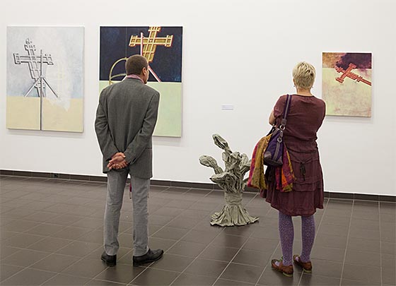 Eckhard Kremers im Marburger Kunstverein – Kunstwerke, die sich über eine rote Linie mäandernd verbinden
