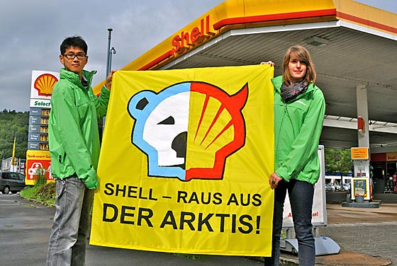 Protest an Shell-Tankstellen – Umweltaktivisten von Greenpeace wollen Ölbohrungen in der Arktis verhindern