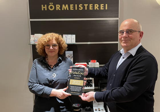 22.01.2022 (pm) Die HÖRMEISTEREI am Bebelplatz erhält für herausragende Kompetenz im Bereich maßgefertigter Im-Ohr-Hörsysteme die Auszeichnung Atelier-Experte 2022 des Hörsystemherstellers Audio Service.