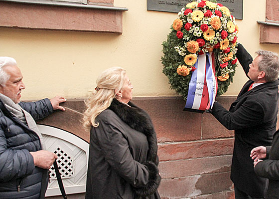 Marburg 26.3.2016 (pm/red) Mit dem Anbringen eines Kranzes an der Gedenktafel am alten Landratsamt wurde in der Stadt Marburg am Mittwoch der 500.000 Sinti und Roma gedacht, die unter den …