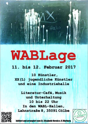 Marburg 10.2.201 (pm/red) „WABLage“: Am 11. und 12. Februar findet ein von Kunstschaffenden und vom St. Elisabeth-Verein betreuten Jugendlichen arrangiertes Event mit Musik und Lesungen statt. Von „Abfrage“ bis zur …